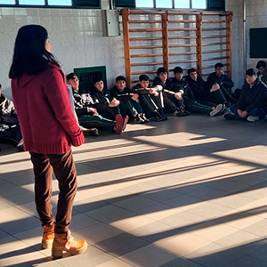 Viviam Perrone, integrante de Madres del Dolor, mamá de Kevin Sedano, quien a los 14 años falleció por ser atropellado en la vía pública, tuvo una charla con 4to y 5to año.